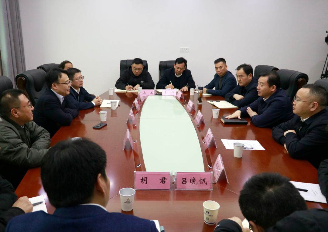 3月4日,市委书记胡昊,市委副书记、市长查俊与中能建绿色建材有限公司党委书记、董事长、中国能建绿色先进材料研究院院长蒋洋, 中能建绿色建材有限公司党委副书记、总经理向华仙一行座谈,双方围绕工农业固废再生土壤、农业新材料研发、全域国土综合整治、磷石膏综合利用等方面进行深入交流,并达成广泛共识。