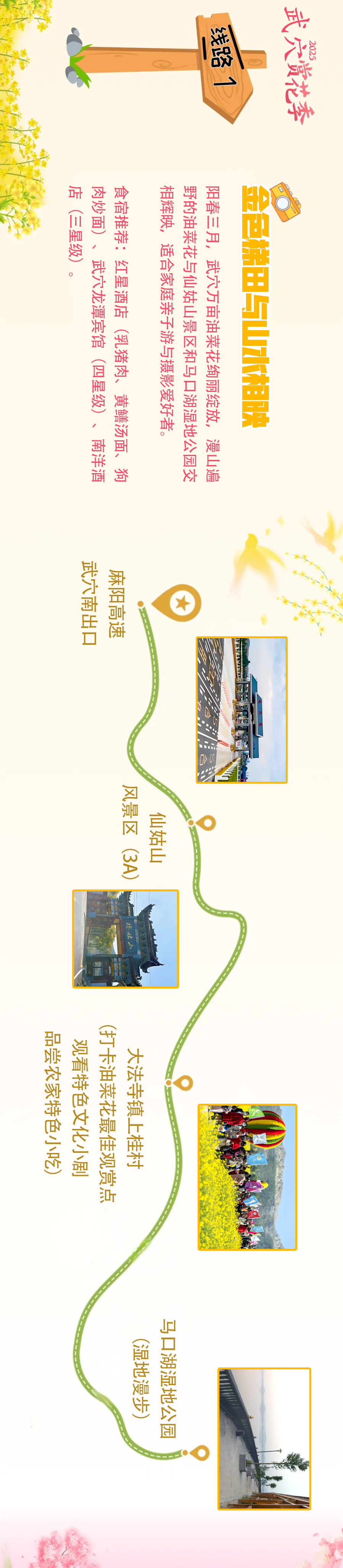 没错!把手机横过来,笔直照图走~~~ 2025-03-20 09:43 0 春风有信 花开有期 武穴油菜花海 是大地写给人间的情诗 若你也向往逃离喧嚣 投身自然 就请选择以下三条精品旅游线路 去感受被金黄花海包围的美好 尽情享受泥土的芬芳和大自然的惬意 武穴春光锦绣裁 菜花无际漫田垓 风摇金浪千重起 日映黄云四面开 春光正好 莫负花期 请跟随我们的脚步 来武穴 见春天 开启油菜花田的治愈之旅 制图:陈庆锋 一审:刘进军 二审:刘飞 三审:吴志刚