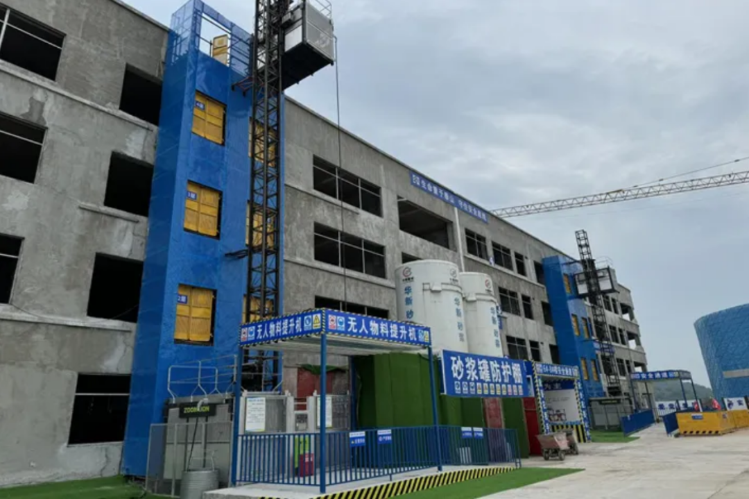 项目严格落实扬尘防治“六化”措施,使用标准化围挡、智能喷淋系统。运用BIM技术辅助施工管理,应用无人操作施工电梯、抹灰粉刷机器人、一站式入场培训等智慧工地技术。