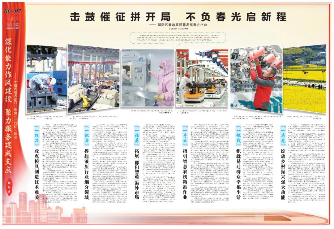 为充分展示各县市区、各部门及各行各业以持续提升能力作风促发展大跨越的生动实践,全面呈现十堰聚力“建功支点”战略的新谋划、新突破、新成效,十堰日报今起陆续推出“深化能力作风建设 聚力服务建成支点——十堰各地各部门一季度‘开门红’展示”专题报道,首期聚焦郧阳区奏响高质量发展春之序曲!