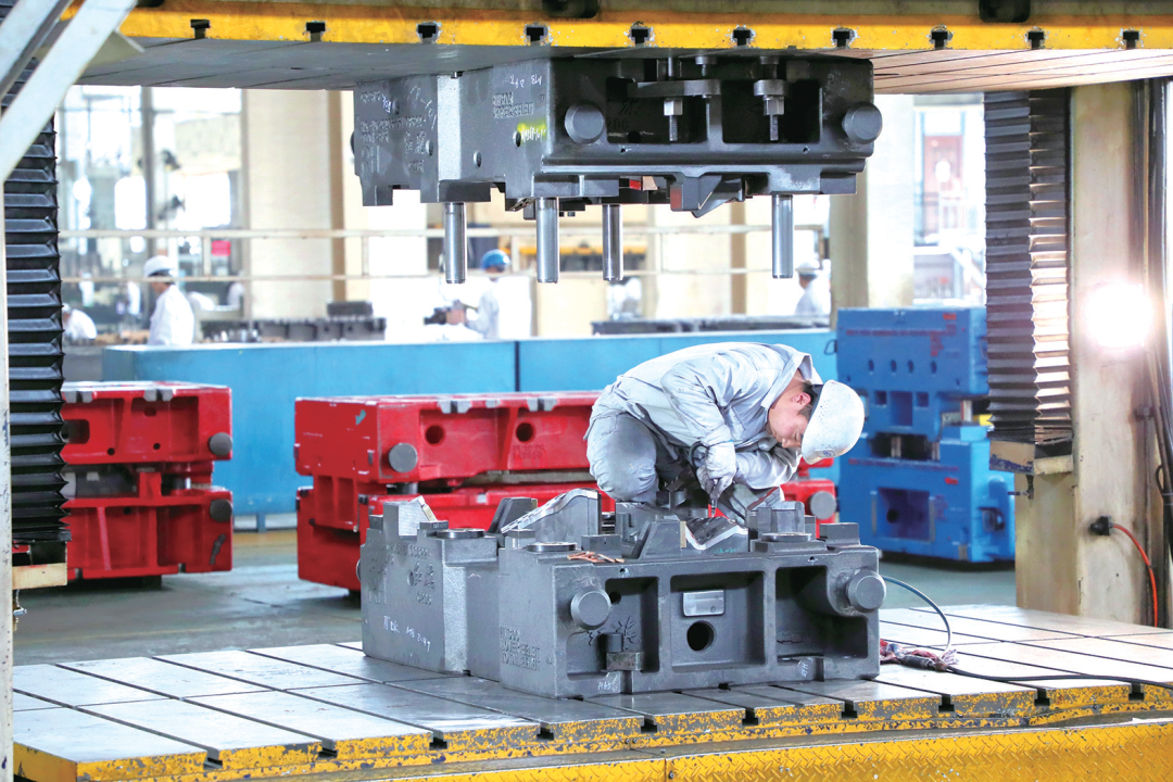 湖北十堰先锋模具股份有限公司工人在生产线上忙碌,全力以赴赶订单。记者 全正 摄