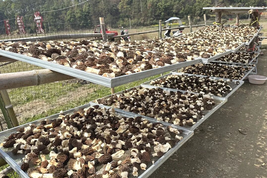 新鲜羊肚菌含水量高,易变质,村两委集资4.6万元购置了一台烘干机,通过40-60℃精准控温,实现羊肚菌均匀脱水,并最大限度保留活性成分与香气,同时降低能耗延长保质期,让珍贵风味与经济效益并存。