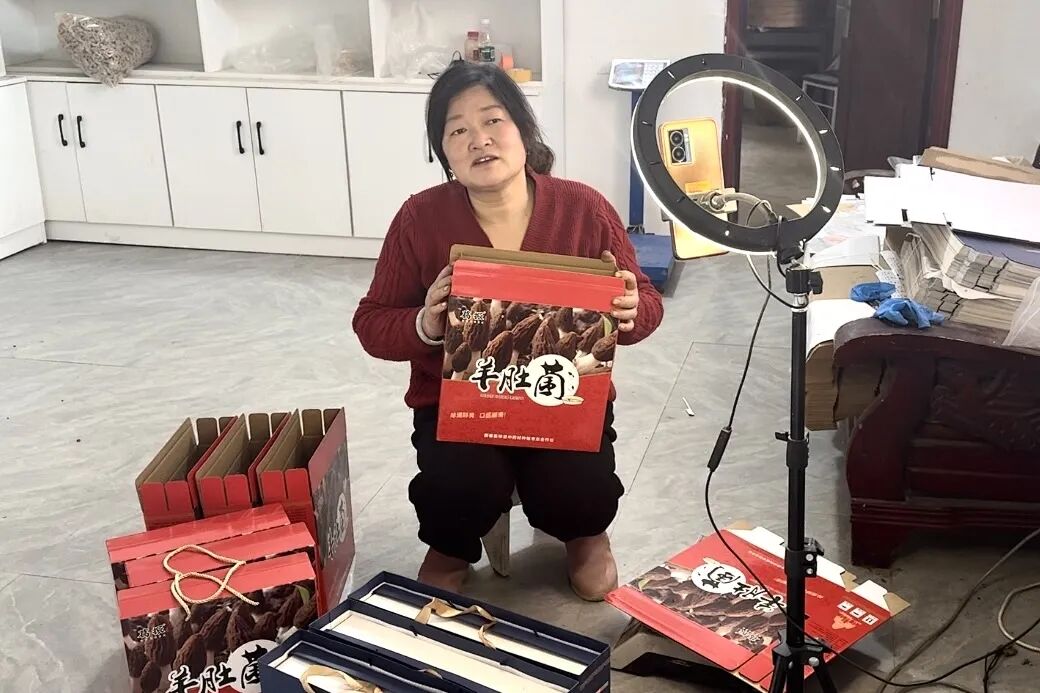“由于村子比较偏远,我自己摸索着开通了抖音直播,去年底,网上销量比较好,有的顾客一次就拿了300-400盒,每天晚上包装到凌晨,有时候甚至搞通宵。”