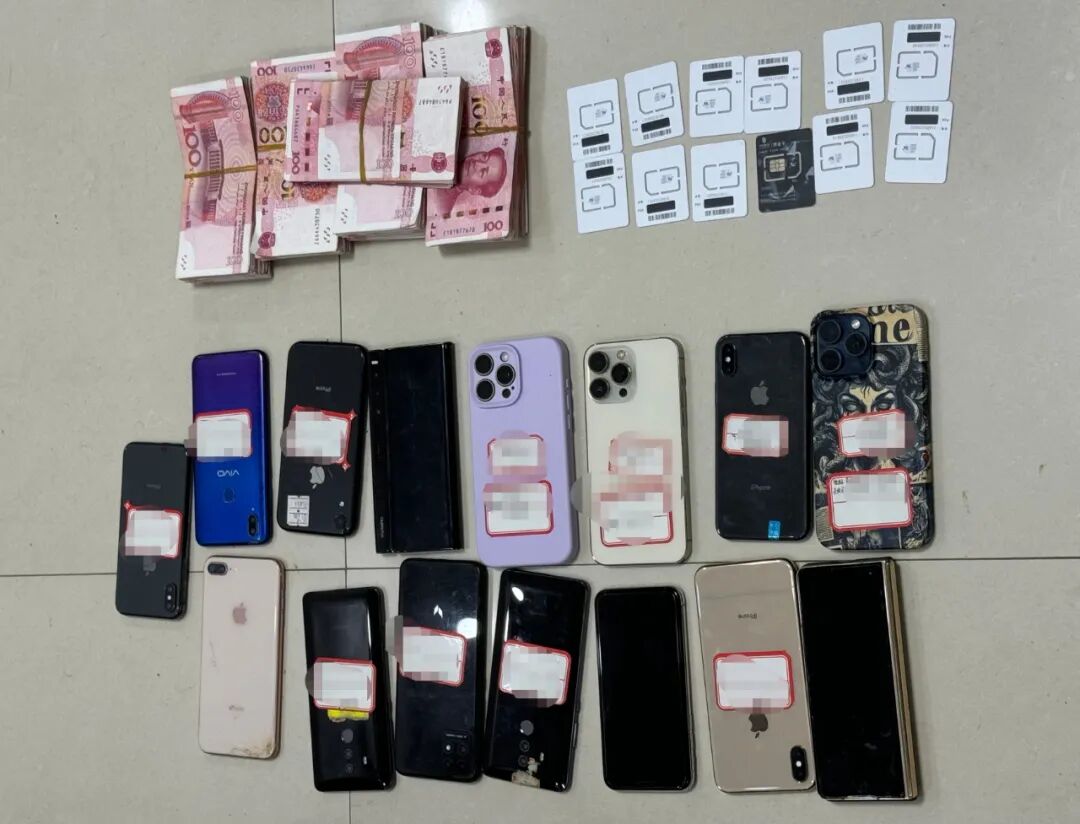 4月10日下午,在市局一体化专班的大力协助下,刑侦大队抓捕专班成功在城区某小区出租房内将犯罪嫌疑人张某等三人抓获,现场扣押作案手机14部、电话卡20余张、涉诈资金4万余元。