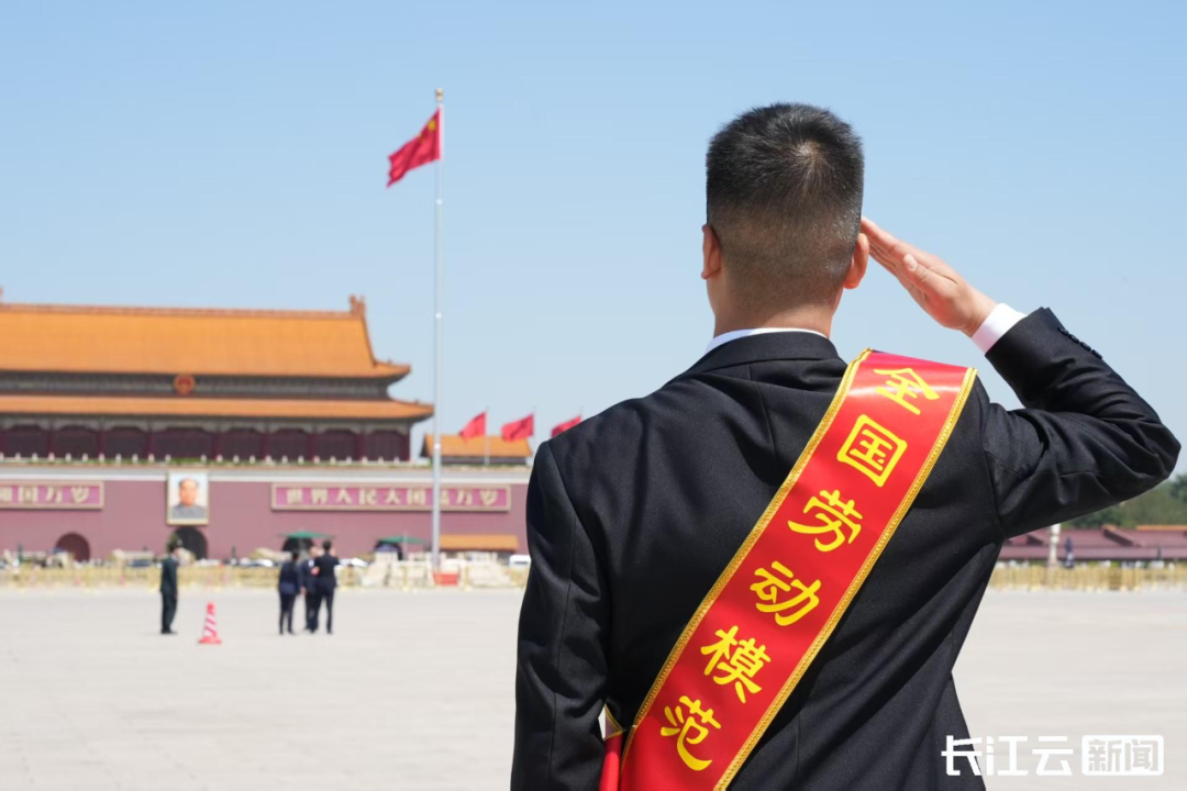 获评“全国劳动模范”后,杨愉锐在天安门广场上向国旗敬礼