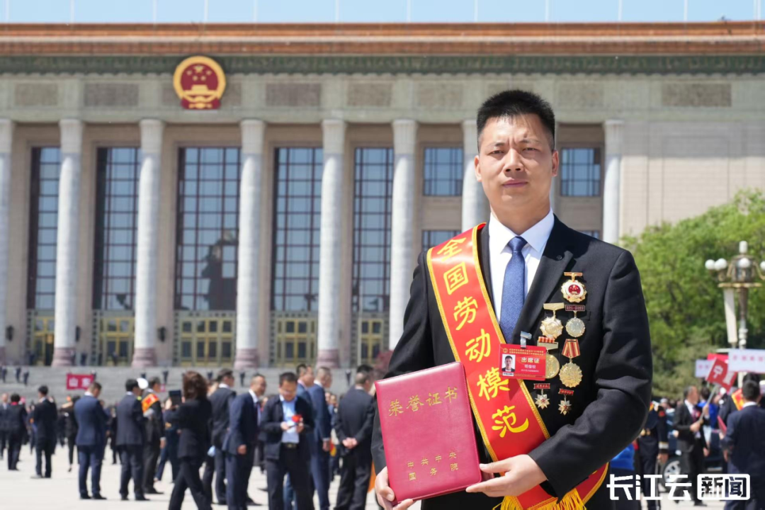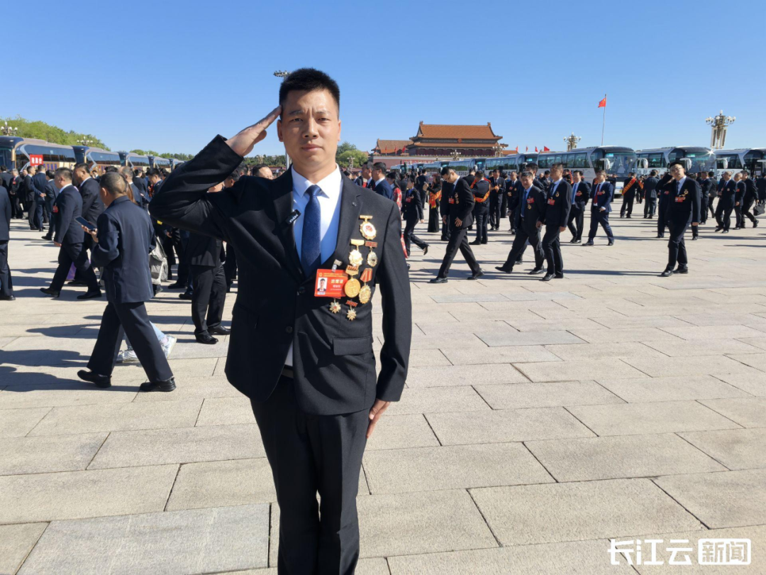 4月28日,2025年全国劳动模范和先进工作者表彰大会在北京举行,湖北省武穴市大金镇周梓村党支部书记、村委会主任杨愉锐获评“全国劳动模范”。今天,作为全国劳动模范再次站在国旗下,杨愉锐的内心非常激动澎湃,这面旗帜见证的不仅是个人成长,更是一个退役军人永不褪色的忠诚与担当。