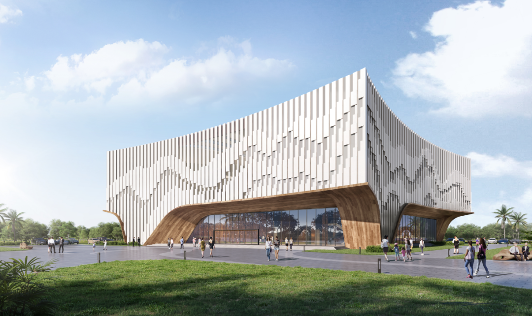 随着主体结构封顶,博物馆的文化承载功能渐次清晰:地上三层规划陈列展览区、教育研学区与游客服务区,地下空间将打造恒温恒湿藏品库房及数字化展示中心,建成后可满足黄花梨、沉香自然标本、古典家具、文献典籍等万余件藏品的保护与展陈需求。隆海建筑项目负责人表示,团队正同步推进幕墙工程与室内精装设计,特别针对花梨木纹理外立面的定制化加工,联合海南本土工匠团队研发仿木纹混凝土工艺,力求让建筑本身成为“会呼吸的文化载体”。