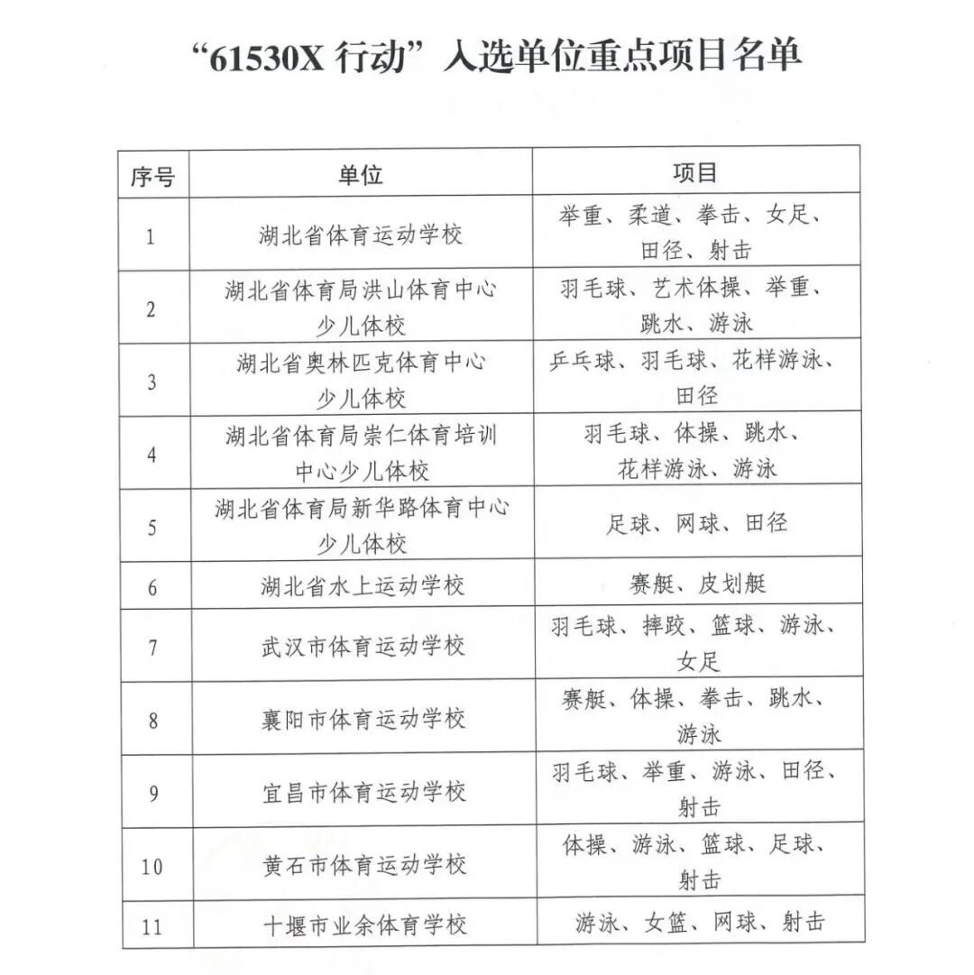 为积极响应国家体育总局“633项目”战略布局,扎实推进《省体育局2025年“青少年体育育苗强基提能工程”建设“61530X 行动”实施方案》落地见效,我省正式公布“61530X行动”入选单位重点项目名单。