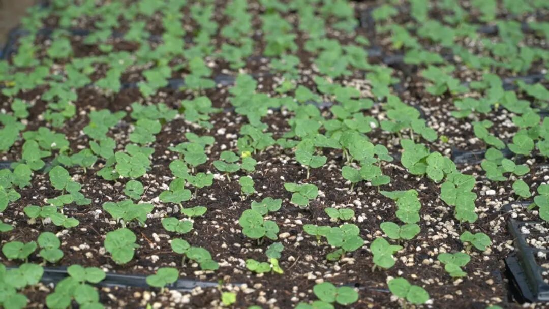150万株黄蜀葵幼苗郁郁葱葱,长势喜人