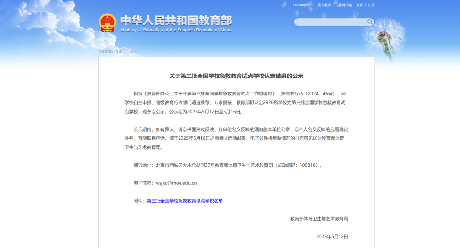 《关于开展第三批全国学校急救教育试点工作的通知》