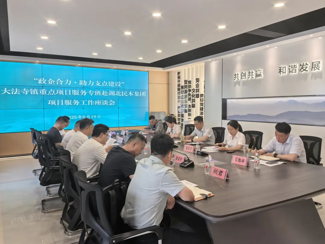 为深入贯彻落实全市干部作风建设暨优化营商环境大会精神,5月19日,大法寺镇党政负责人率重点项目服务专班深入重点企业湖北民本集团开展专题服务对接,通过面对面座谈、点对点协调,搭建政企沟通“连心桥”,共绘高质量发展“同心圆”。