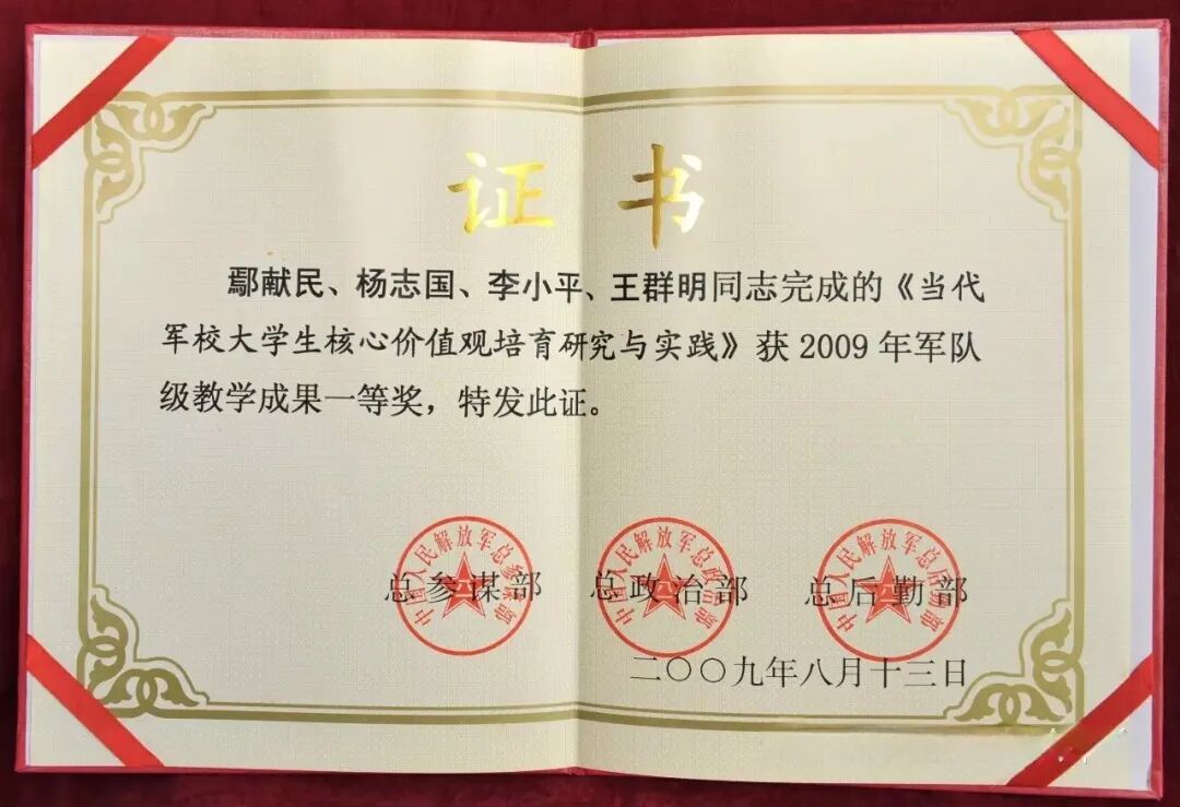 ▲2009年鄢献民获全军教学成果一等奖