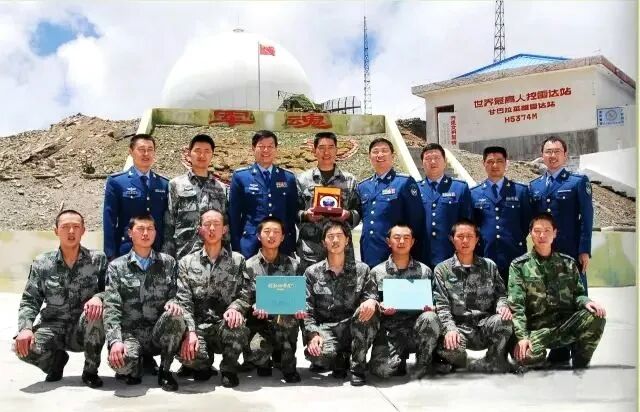 ▲2008年鄢献民到世界最高人控雷达站-西藏甘巴拉英雄雷达站调研时与官兵合影