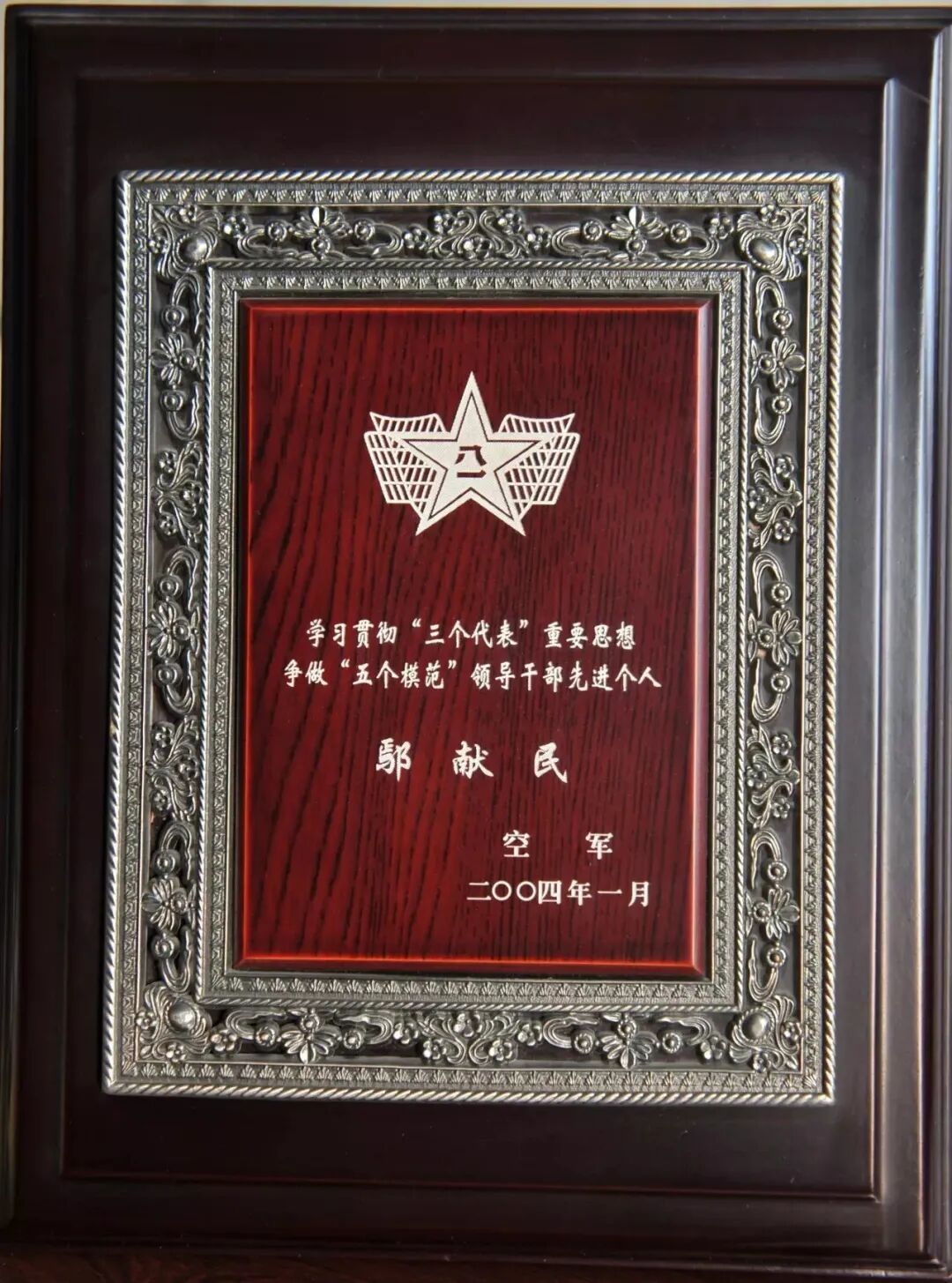 ▲2004年鄢献民被评为空军师团领导干部先进个人