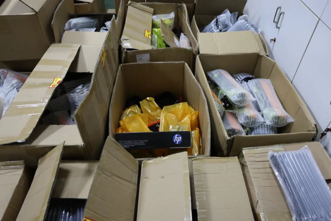 6月4日,在局一体化专班的支持下,经侦大队组织警力展开收网行动,一举捣毁制假窝点1个、仓库4个,抓获郭某、孔某、孔某胜等犯罪嫌疑人3名,现场查获假冒惠普品牌硒鼓1628个、惠普品牌硒鼓包装盒11600个、商标标识1112个以及大量制假工具,涉案价值达100余万元。
