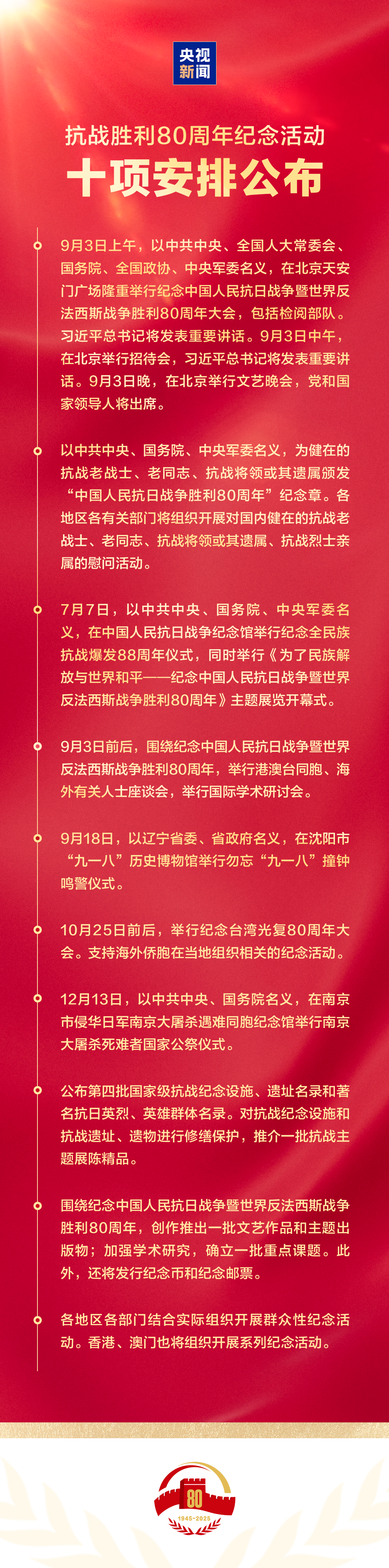抗战胜利80周年纪念活动十项安排,一图速览!