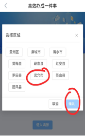 4、进入新界面后,选择区域“黄冈市-武穴市”后点击确认;