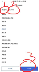 4、进入新界面后选择区域黄冈市-武穴市,点击“下一步”;