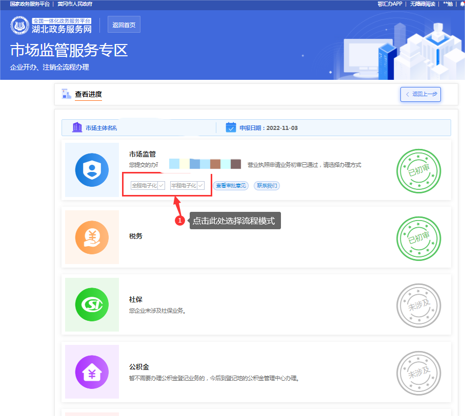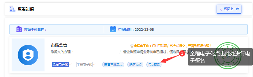 1.选择全程电子化:提交只需要进行电子签名即可。