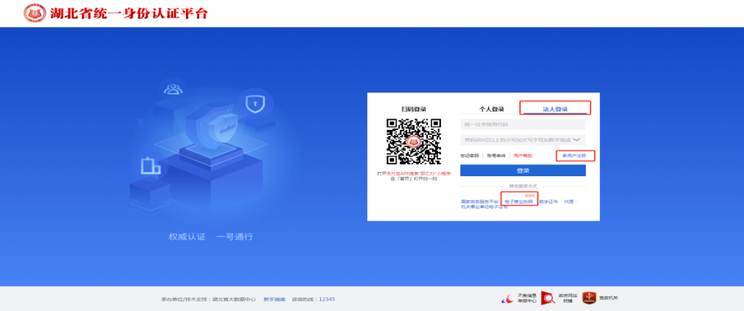 http://zwfw.hubei.gov.cn/点击“登录”;选择“法人登录”如有企业账号可直接登录或选择电子营业执照扫码登录(法人本人微信扫码),若没有账号点击新用户注册。