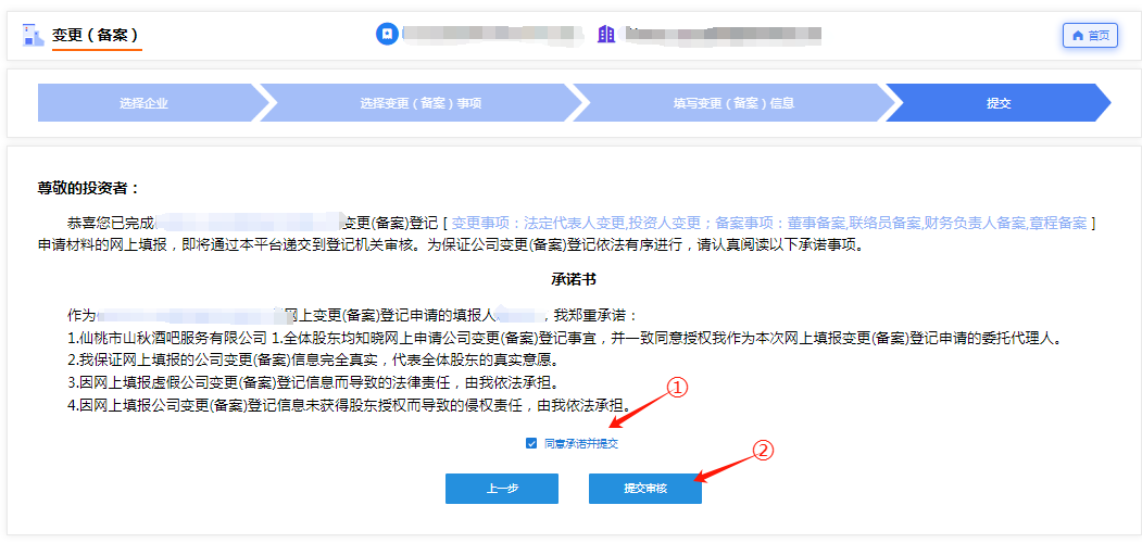 11.点击“同意承诺并提交”,提交审核,初次提交流程到此结束;