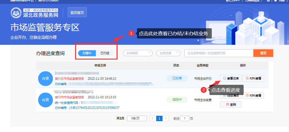 4.审批之后点击查看办理中/已办结业务,点击查看进度。