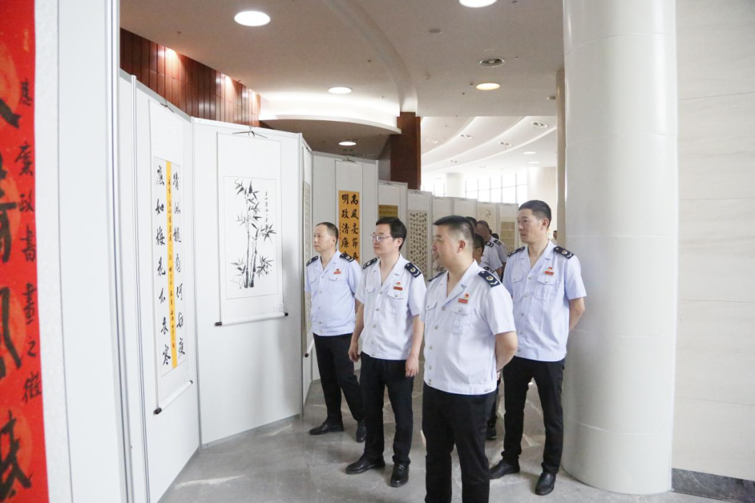 以“税徽闪耀党旗红”为主题打造全新的党建阵地、清廉机关示范点和荣誉室。并且因地制宜,针对机关办公楼特点,将走廊通道打造成图文并茂、美观大方的税务文化长廊,在每个楼层都挂有名言警句书法作品,以精神树廉、警示明廉,让税务文化走廊成为精神熏陶的阵地、净化心灵的课堂。