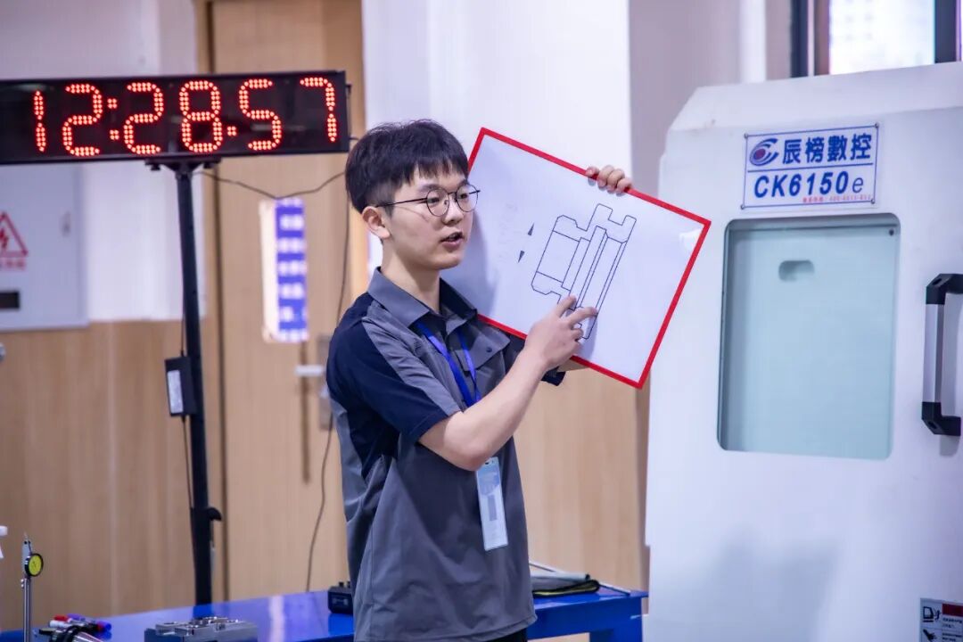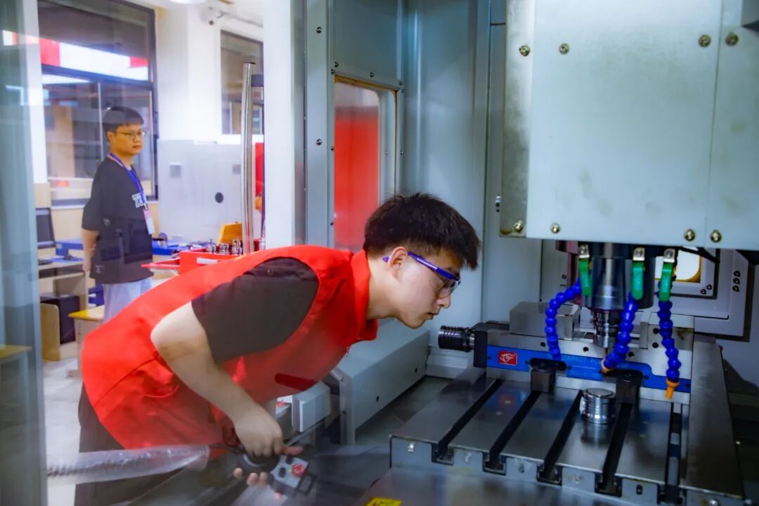 赛项分推荐组和抽测组。选手们凭借扎实的理论功底和娴熟的操作技能,在数控编程与操作等项目中展开对决。每一个尺寸的精准把控,每一次刀具路径的优化选择,都考验着选手们对工艺的理解、设备的驾驭能力以及临场应变水平。赛场内,他们神情专注,动作精准流畅,力求将图纸上的设计转化为完美的实物工件。