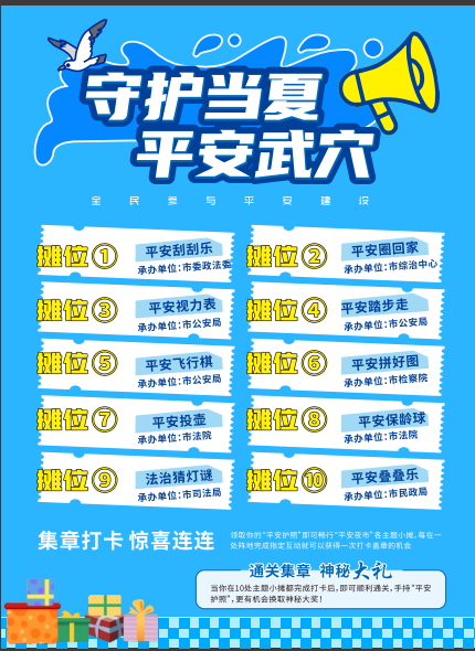 关注“长安武穴”并转发本条推送,集赞10个,即可在活动现场领取“平安护照”集章卡一张。