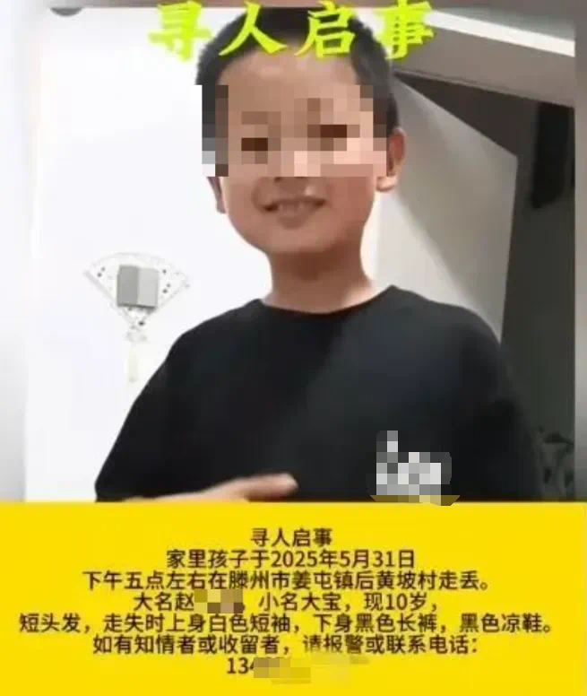 5月31日17时许,山东省滕州市一名男孩走失。当地公安、政府、社会救援力量,采用搜救警犬、无人机等持续开展搜寻。于6月2日15时许,在邻村一河道内发现赵某某已无生命体征。