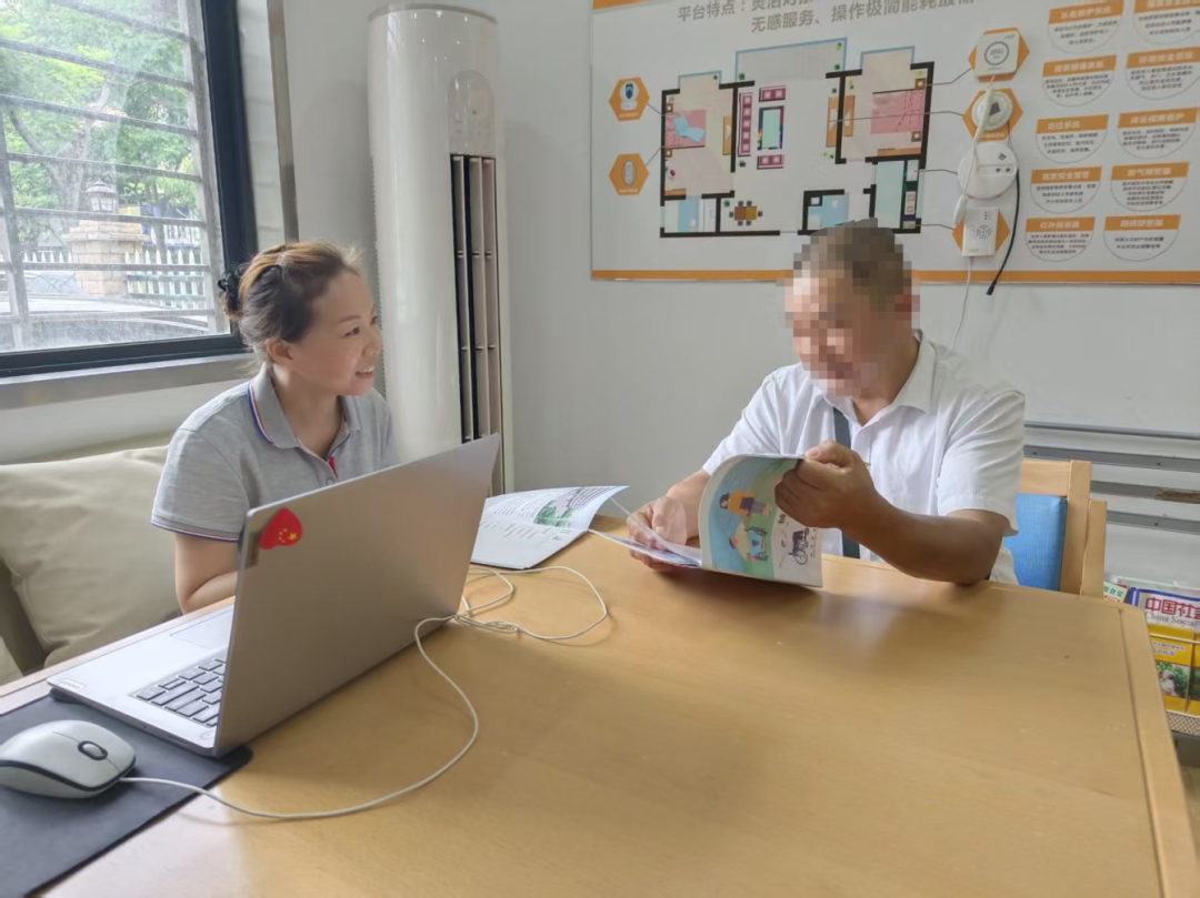 在青山社区“爱心辅具驿站”,工作人员为市民解答问题。胡玉梅 摄