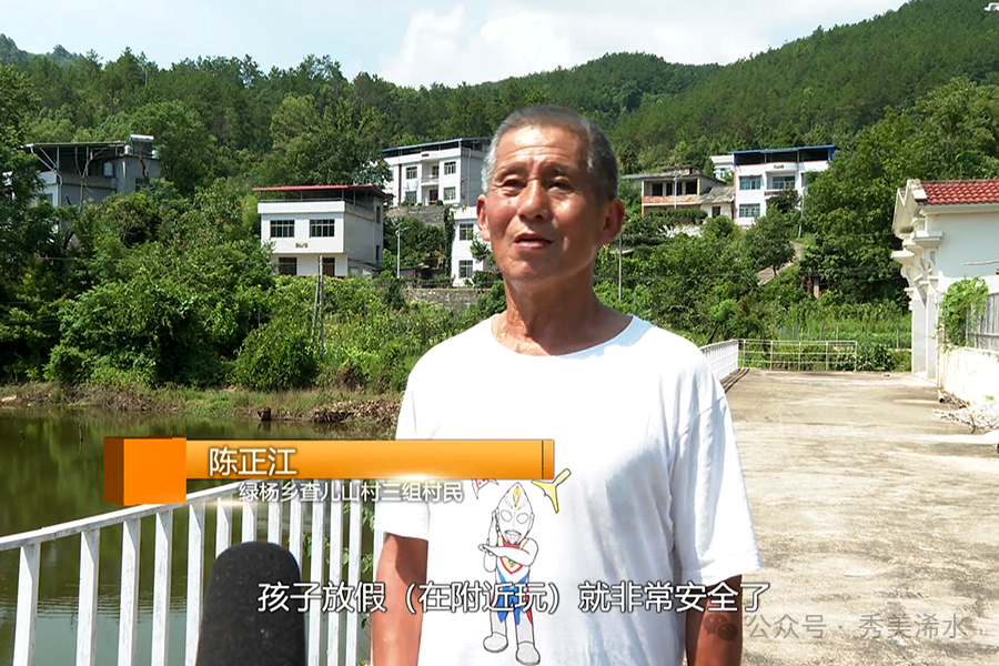绿杨乡查儿山村三组村民 陈正江:原来是一个空的,没有护栏,这个地方非常危险,特别小孩很容易造成溺水。原来这个地方也没有路灯,小孩儿路过以后,很容易迷路,天天心惊胆战的,搞得人心惶惶的。