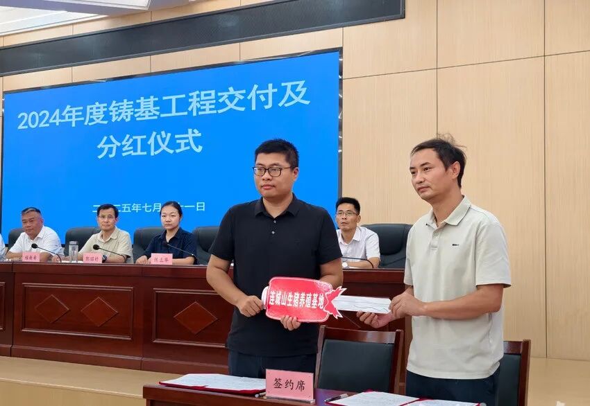 随着农水投集团将象征猪场运营权的“金钥匙”移交企业,武穴铸基工程进入全面推广阶段。四望镇仓下、新月河等3个基地将于年底投产,2026年春节前全市还将有3个基地陆续建成。新签约的梅川镇胡立村等13个村将加入项目,预计带动村均年增收突破10万元。