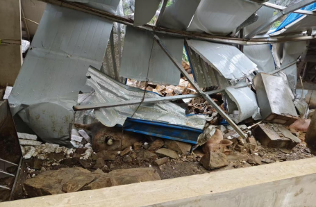 6月21日,黄冈市武穴市发布暴雨橙色预警,大金镇1小时降雨量接近60毫米,地质灾害风险急剧攀升。15时50分,武穴市大金镇刘元村灾害风险隐患信息报送员刘初升巡查发现,该村胡建生猪养殖场后山出现土体松动,碎石滑落现象,此处山坡岩壁近乎垂直,滑坡风险大,于是立即上报。村两委接报后,组织人员将生猪养殖场2名工作人员和950头生猪转移至附近厂房避险。约1小时后,后山突发山体滑坡,养猪场顶棚被毁,滑落的土方石块堆积在厂房内,滑坡方量约500立方米。由于及时避险转移,无人员伤亡,避免了950头生猪伤亡造成的约150万元损失。