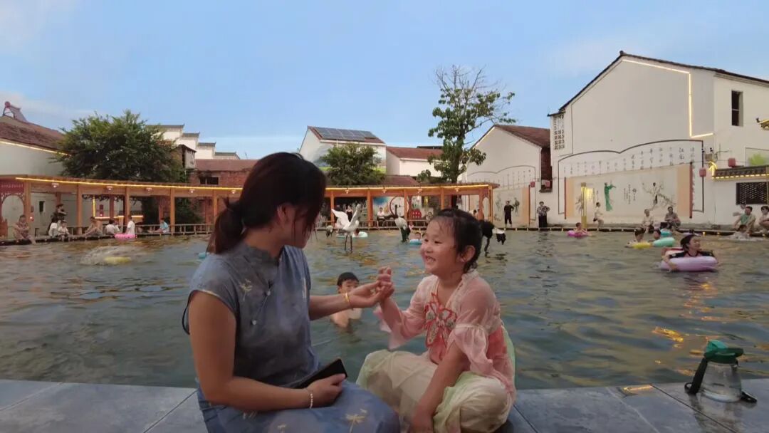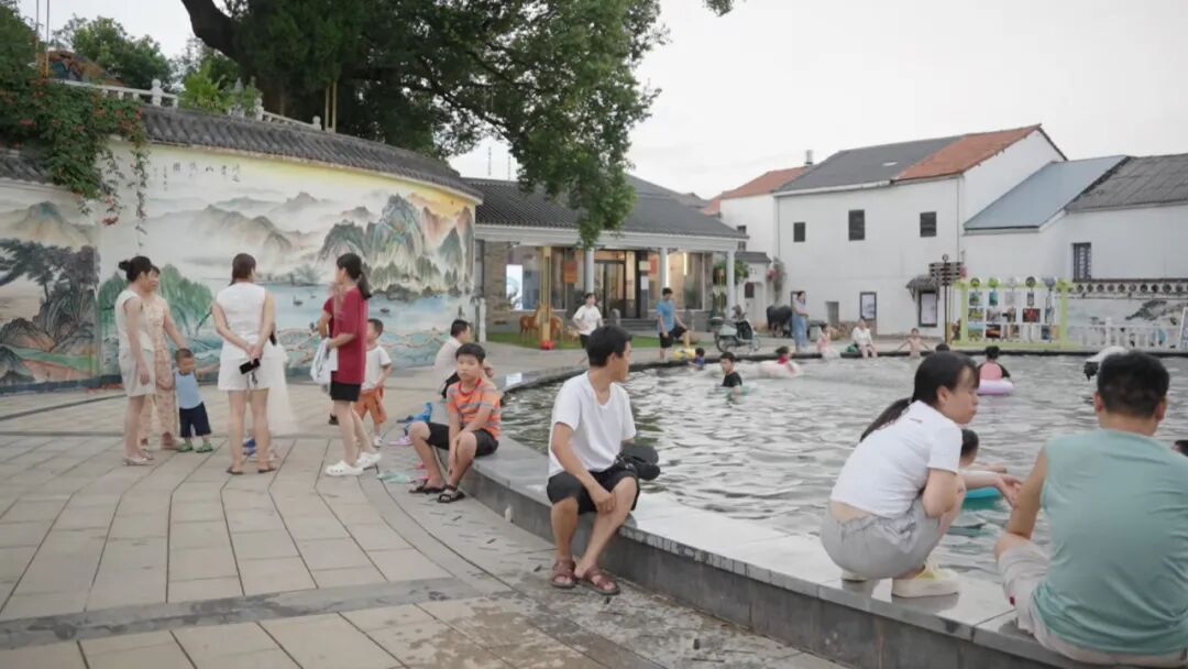 每到夏日傍晚,大金镇苏垴社区的景观池内早已热闹非凡,孩子们在水池中尽情嬉戏打闹,父母们在池边说着家长里短,欢笑声,聊天声此起彼伏,络绎不绝。