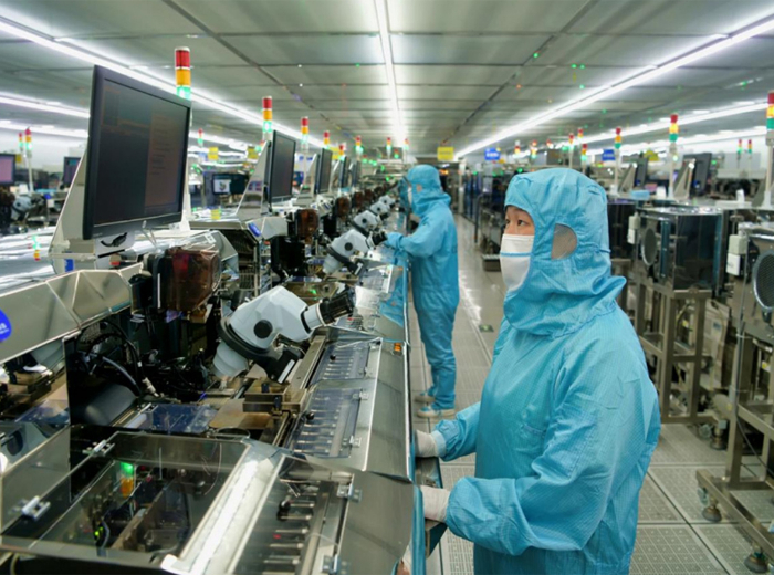 图为湖北三赢兴光电科技股份有限公司的生产车间。新华网发