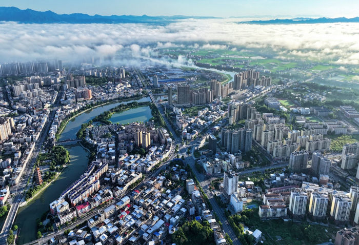 清晨的通城县城。新华网发