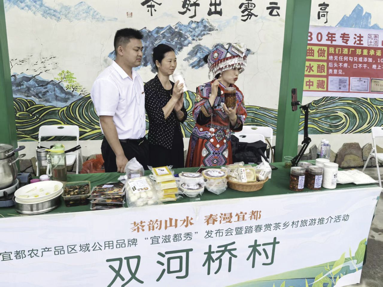 日前,宜都市王家畈镇双河桥村村干部在乡村“云集市”上直播带货本地农产品。 通讯员刘传东 摄