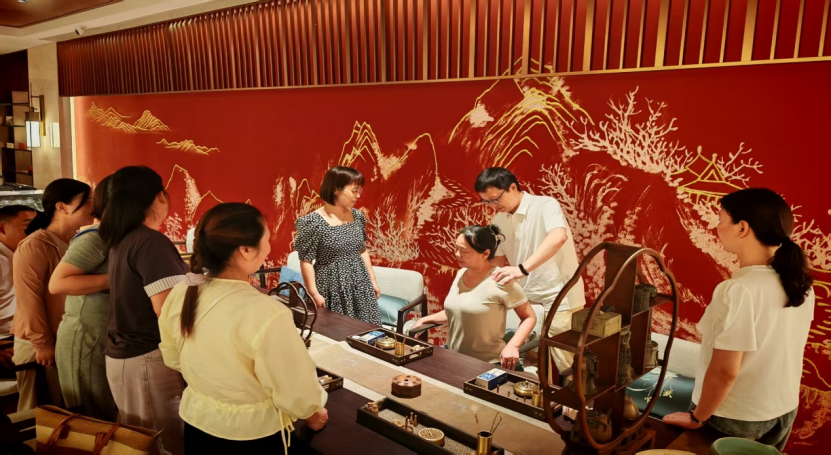 行程中,劳模们沉浸式体验了武当山的“仙山秀水”。他们登金顶感受“千层楼阁空中起,万叠云山足下环”的雄奇。赏太子坡、磨针井、玉虚宫等建筑与自然的和谐之美;参与武当雅集,聆听悠扬道乐、品饮清雅山茶、学练太极功法,观看实景演绎《武当一梦》,在科技与艺术的融合中感受武当文化的深厚底蕴。