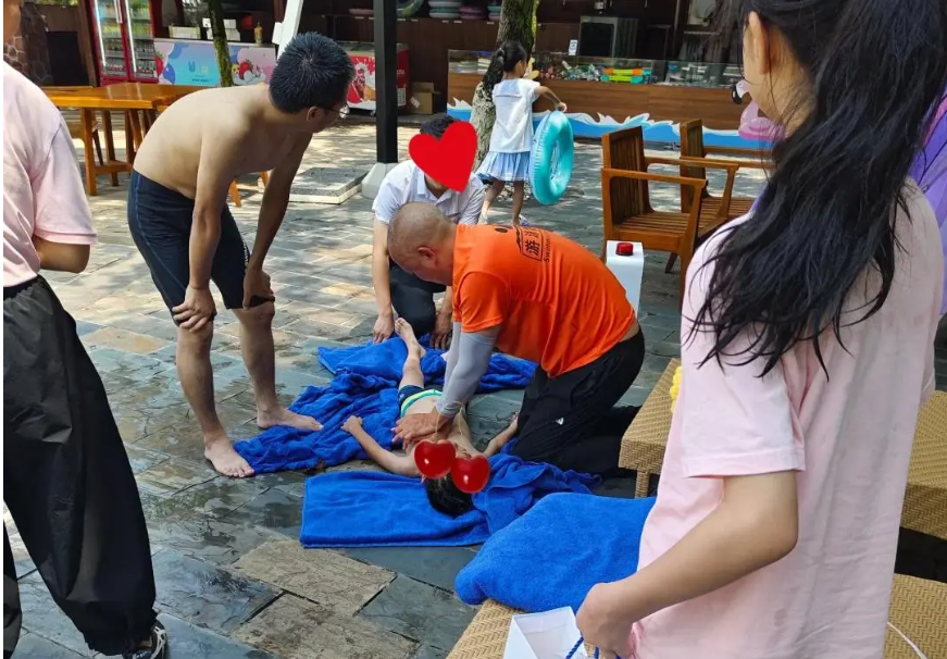 8月17日,四川乐山某度假酒店,一名约7岁的男孩在游泳池不幸溺水,所幸被泳池边一女游客发现,连忙叫丈夫下水将小孩抱了上来,经救生人员10余分钟的心肺复苏急救,溺水儿童终于缓过气来。