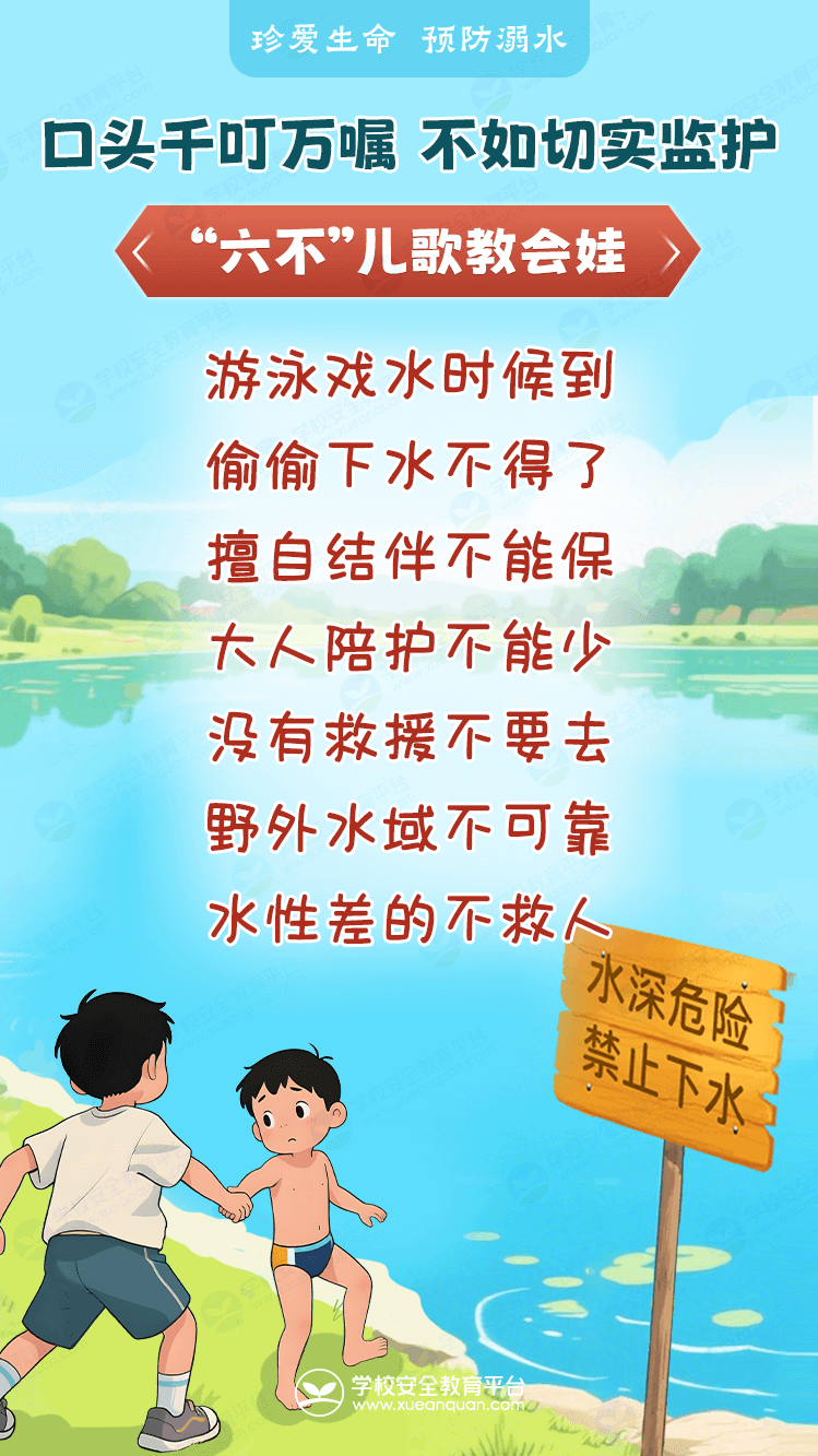 切勿在江河、野塘、水库、溪潭等水域冒险