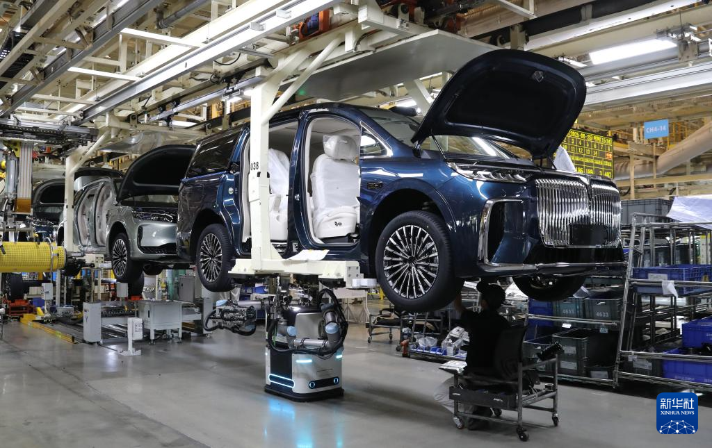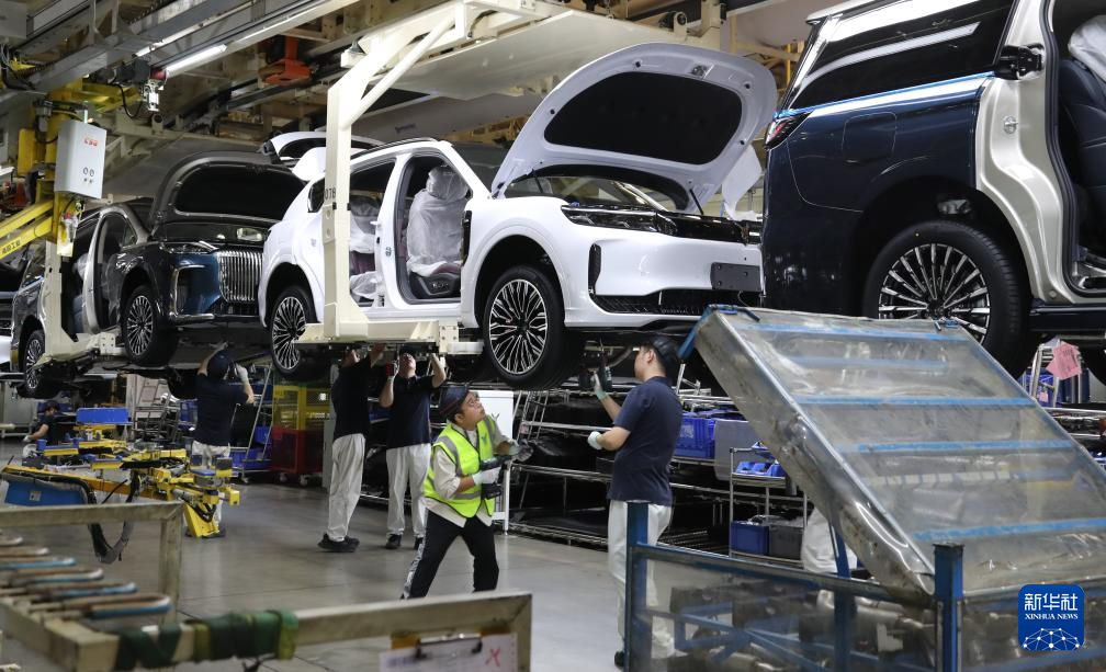 8月25日,工人在岚图汽车武汉工厂生产线忙碌。岚图汽车武汉工厂是国家级智能制造示范工厂,实现5G+工业互联网全覆盖,四款车型混流生产,平均每118秒即可下线一辆整车。新华社记者 龚兵 摄
