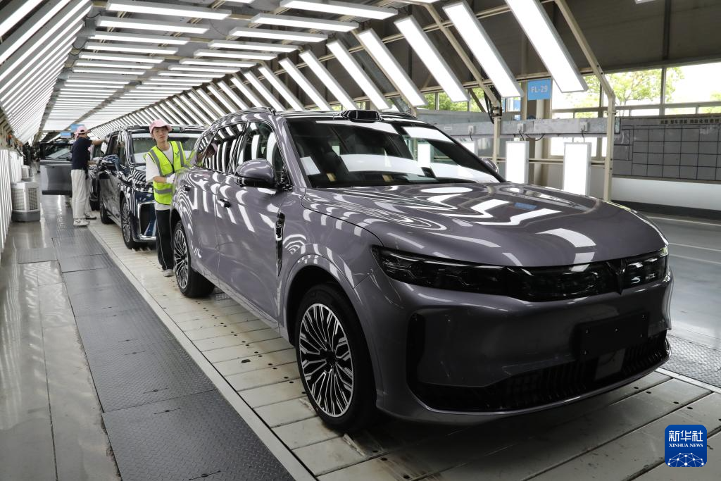 8月25日拍摄的岚图汽车武汉工厂生产线。岚图汽车武汉工厂是国家级智能制造示范工厂,实现5G+工业互联网全覆盖,四款车型混流生产,平均每118秒即可下线一辆整车。新华社记者 龚兵 摄