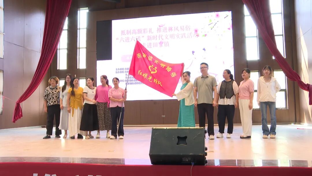 活动还举行了田家镇文明婚俗红娘先锋队授旗仪式,鼓励队员们积极发挥作用,为乡村青年牵线搭桥,助力文明婚恋理念深入基层。此外,宣讲人员还分享了“中国好人”“全国文明家庭”贾明舜的文明家风故事,通过其孝老爱亲、勤俭持家的事迹,传递良好家风,为未成年人成长教育树立起榜样,助力未成年人思想道德建设。