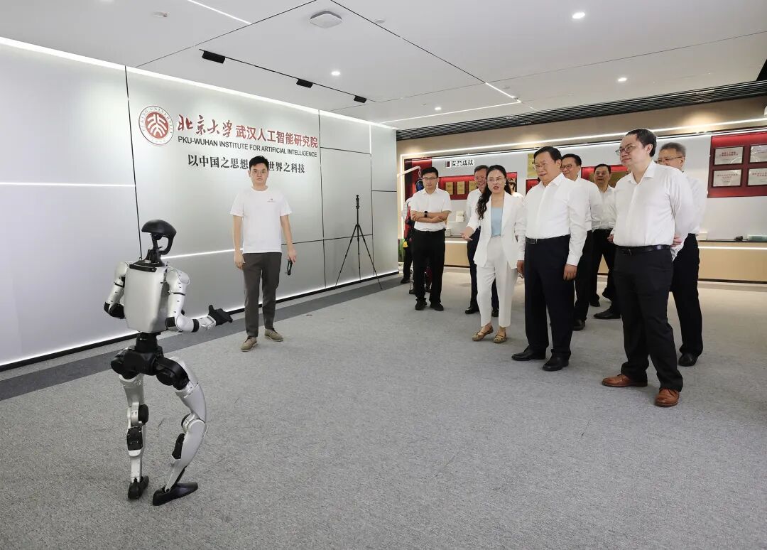 北京大学武汉人工智能研究院是由北京大学、武汉市、东湖高新区共建的新型研发机构,致力于“数字智能”“社会模拟”和“具身智能”研究。王忠林走进研究院,察看人形机器人最新研发成果和大型社会模拟器情景演示,与研究院首席科学家朱松纯等科技工作者亲切交流。王忠林对研究院依托人工智能先进技术,打造东湖高新区全国首个社区级“天—地—人”协同治理模式给予充分肯定,希望研究院积极推进教育科技人才一体化发展平台建设,构建开放共享技术生态,推动人工智能技术更好赋能智慧医疗、智慧交通、地灾防治等领域,为社会治理提供有力决策支持。