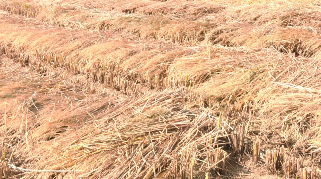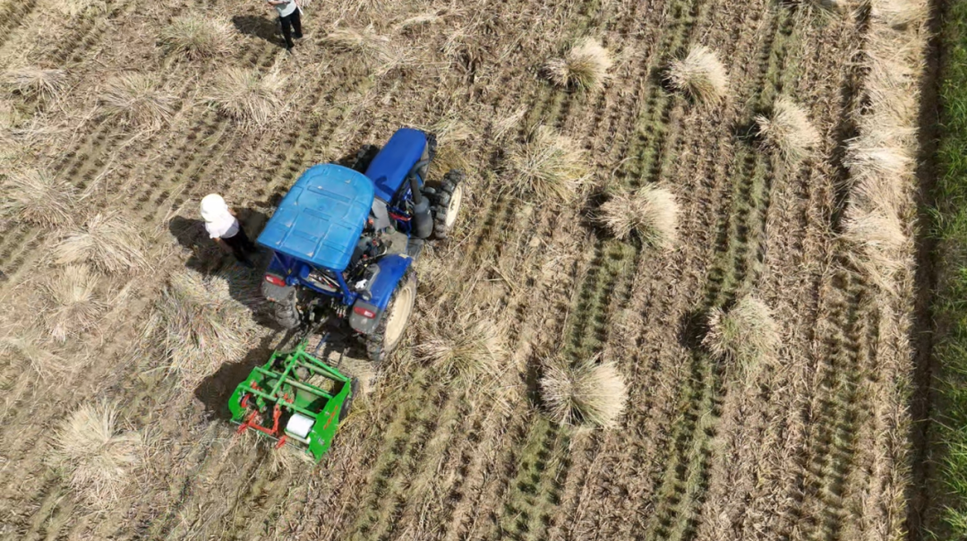 难题一:防风固沙需要长草,但荆门地区习惯采用水稻全喂入收割方式,水稻收割同时稻草被全部粉碎,不能用于防风固沙。