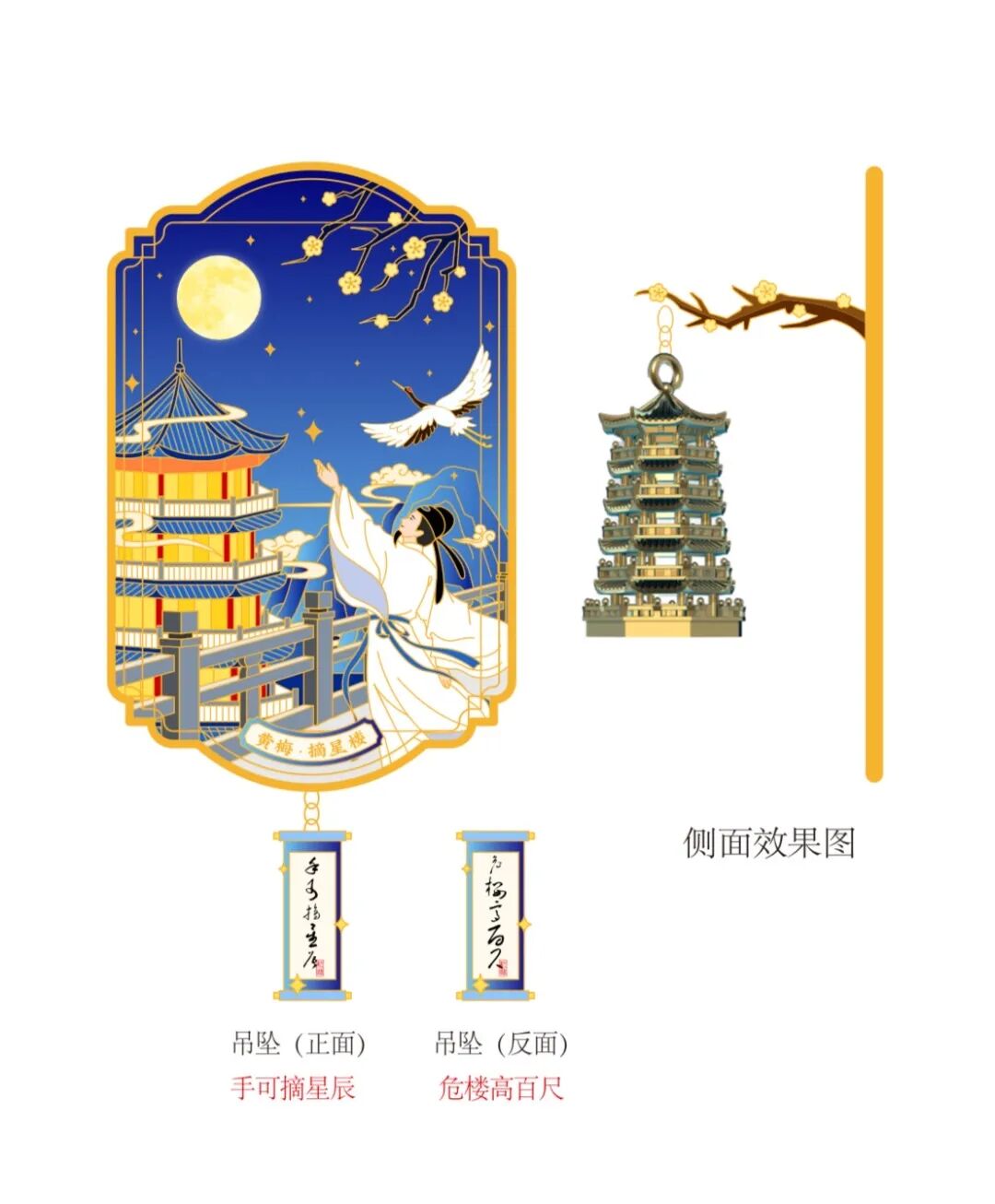新品涵盖多样类型,包括3款戏曲人物徽章、夫妻观灯小夜灯、摘星楼发光冰箱贴、黄梅四大非遗主题笔记本、黄梅戏曲折扇、脸谱团扇以及《黄梅禅宗祖师传说》绘本。