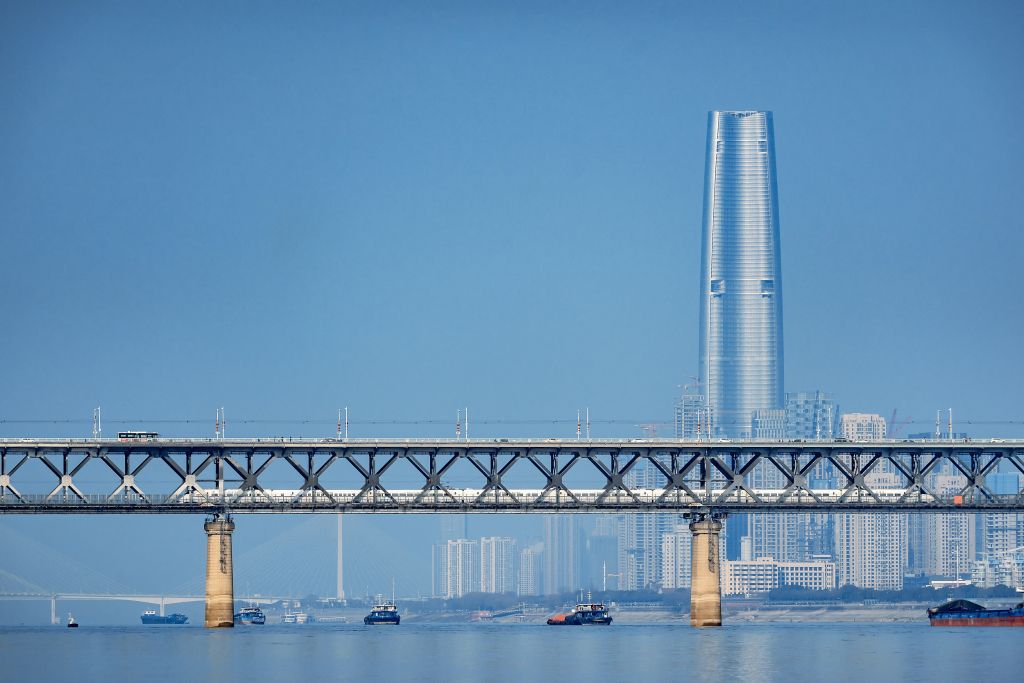 武汉长江大桥与江边高楼。视觉中国 图