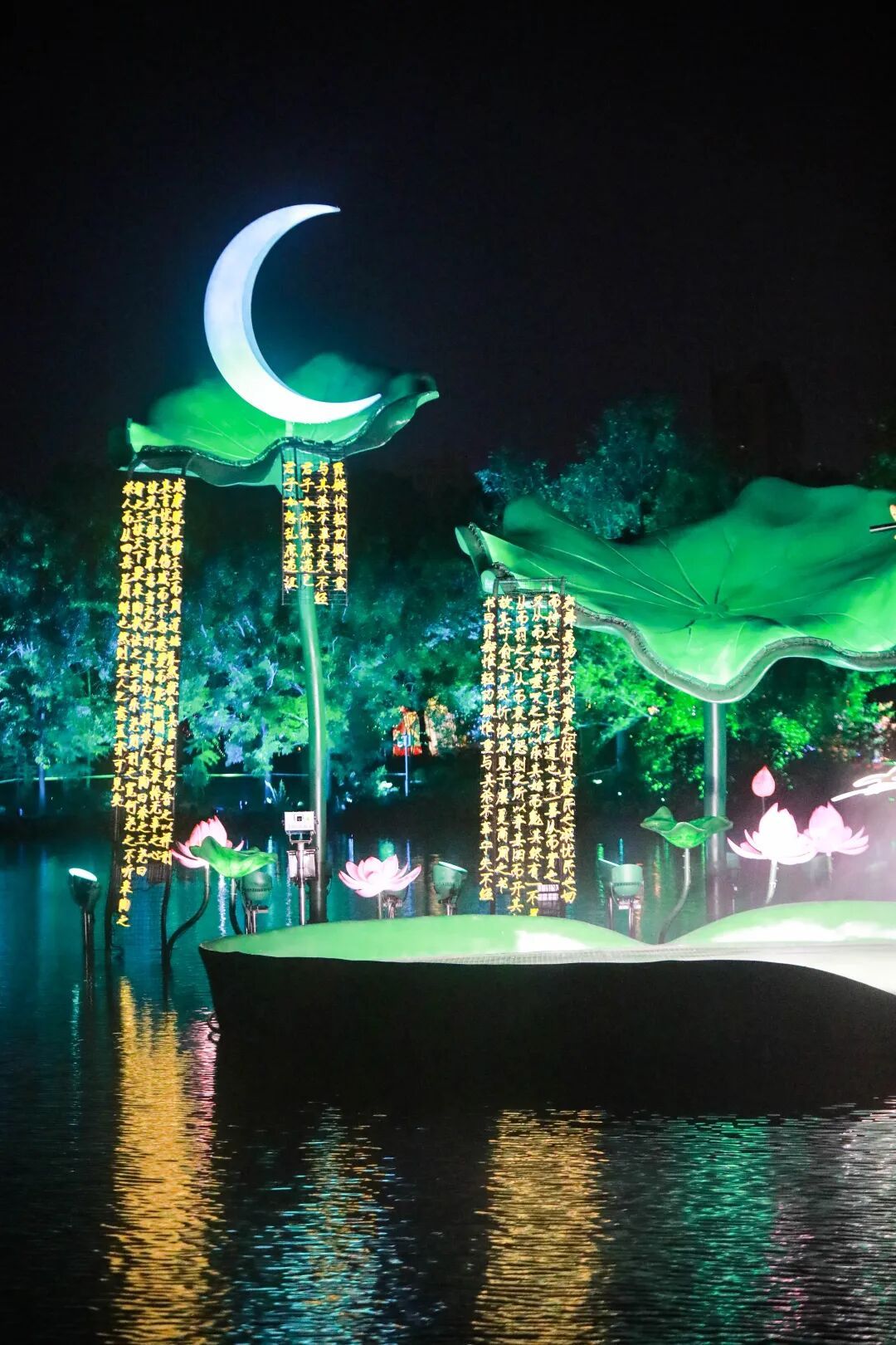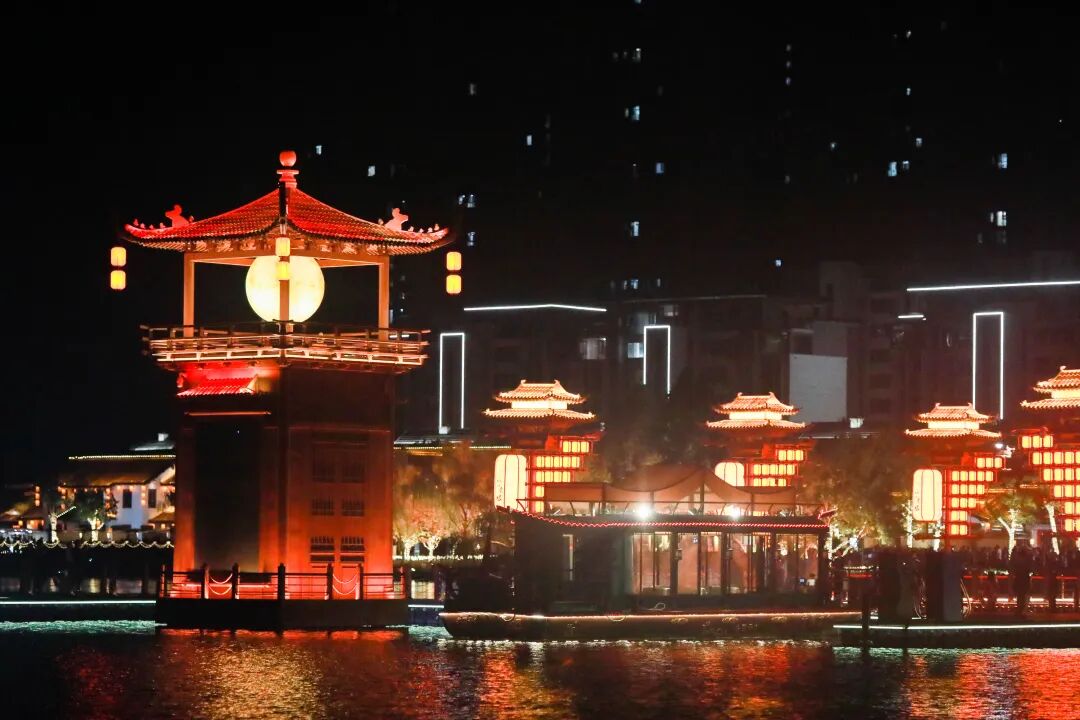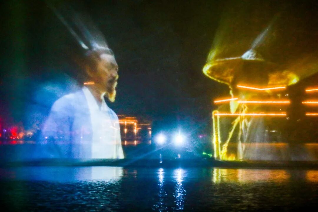 在夜游最后,冲天的水柱从湖面升起,仿佛形成一道时空之门,当“但愿人长久,千里共婵娟”的诗句和着动人歌声出现在水幕上时,现场不少观众都情不自禁地跟着吟唱起来。这一刻,千年的文化传承在夜色中焕发出新的生命力。