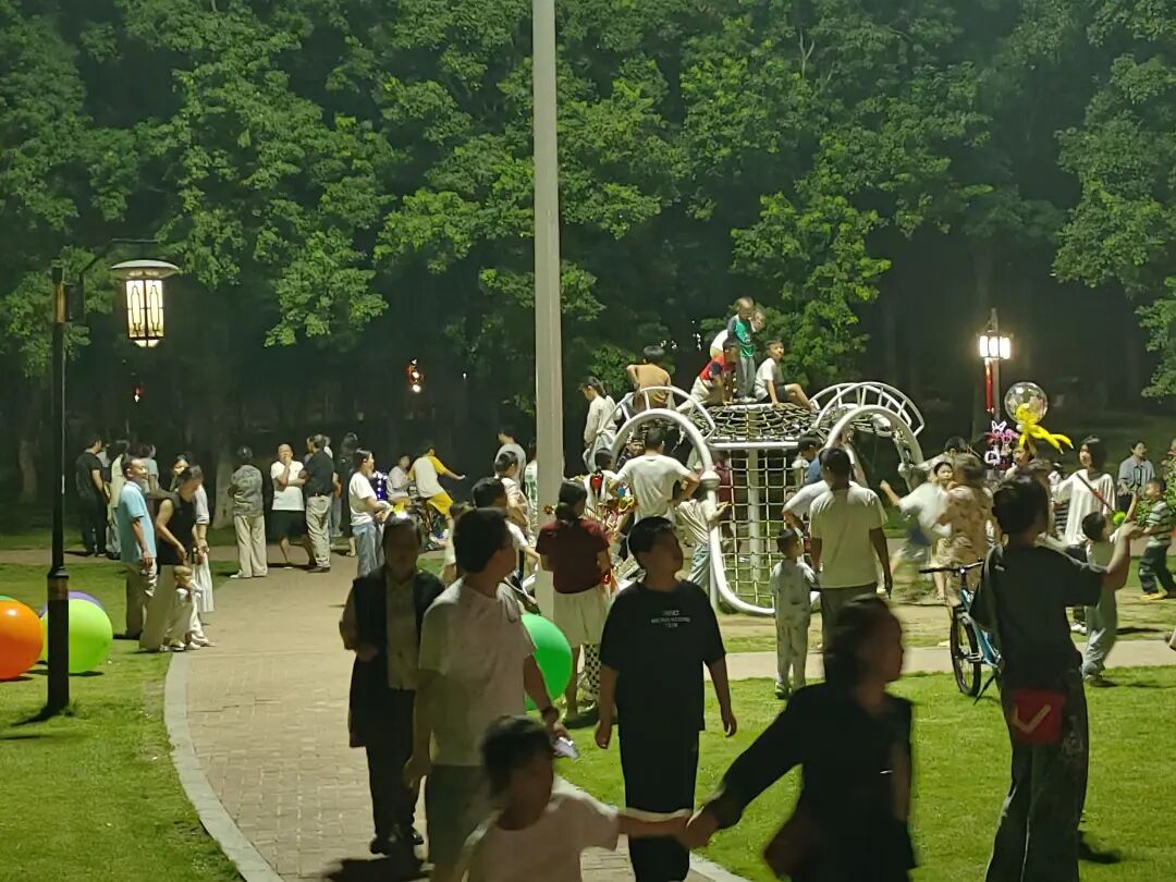 在广济时光景区的儿童游乐区,也是一个藏满笑声的欢乐天地。色彩鲜亮的滑滑梯前,孩子们排着小队期待“飞驰而下”的快乐;一旁的秋千轻轻荡起,将清脆的笑声送向空中。无数孩童在此追逐嬉戏,稚嫩的脸庞映着阳光,每一处玩乐场景都充满活力,成为景区里最治愈、最动人的风景线。